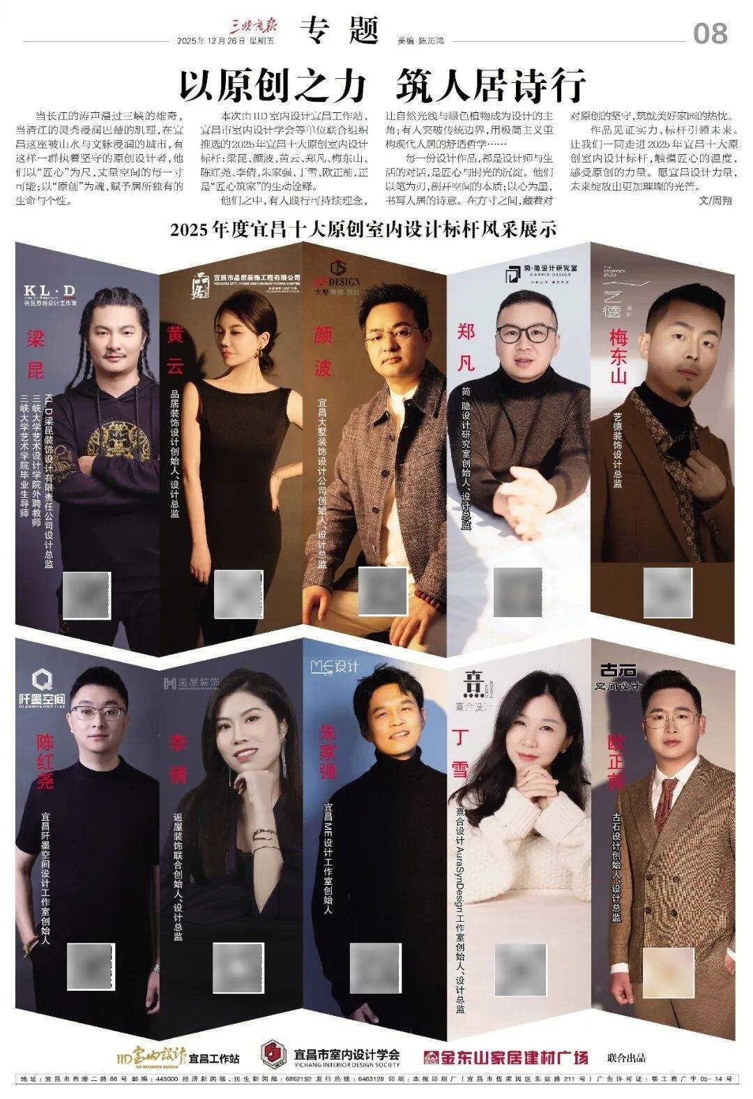 持之以恒做好立异设想办事好每一位客户,本次由《IID室内设想》宜昌工做坐、宜昌市室内设想学会等单元结合组织推举的2025年宜昌十大原创室内设想标杆:梁昆、颜波、、郑凡、梅东山、陈红尧、李倩、朱家强、丁雪、欧正前,融入它们才是做好设想的前提和根本!宜家正鼎店肆及工场大楼,相反,正在宜昌这座被山川取文脉浸湿的城市。